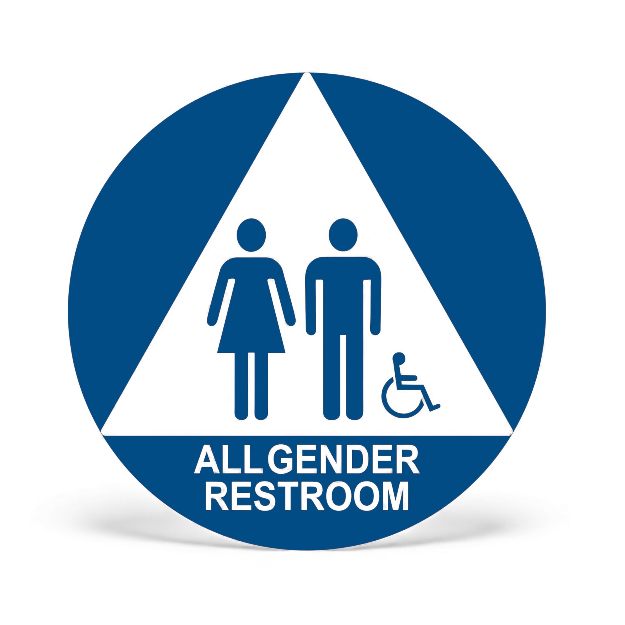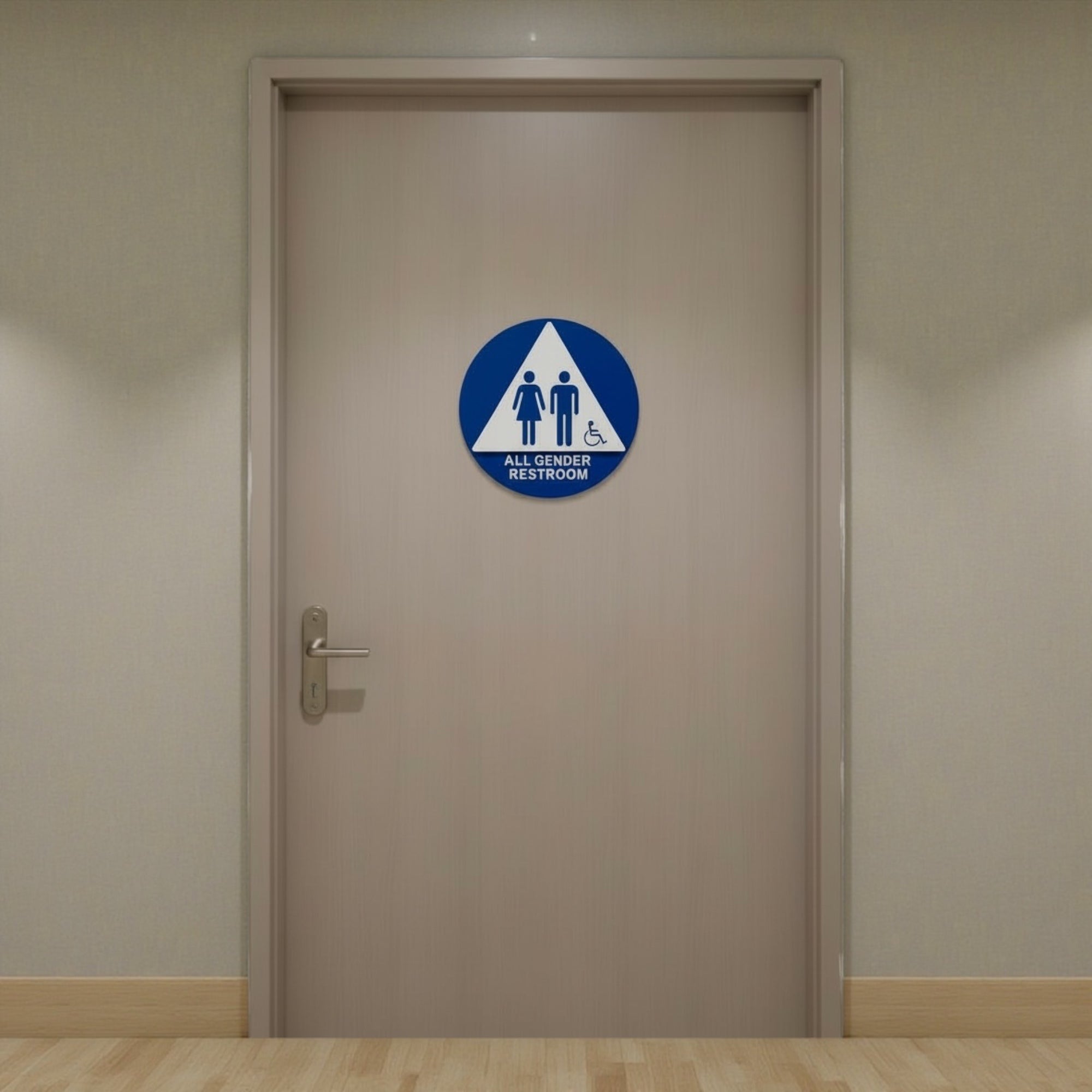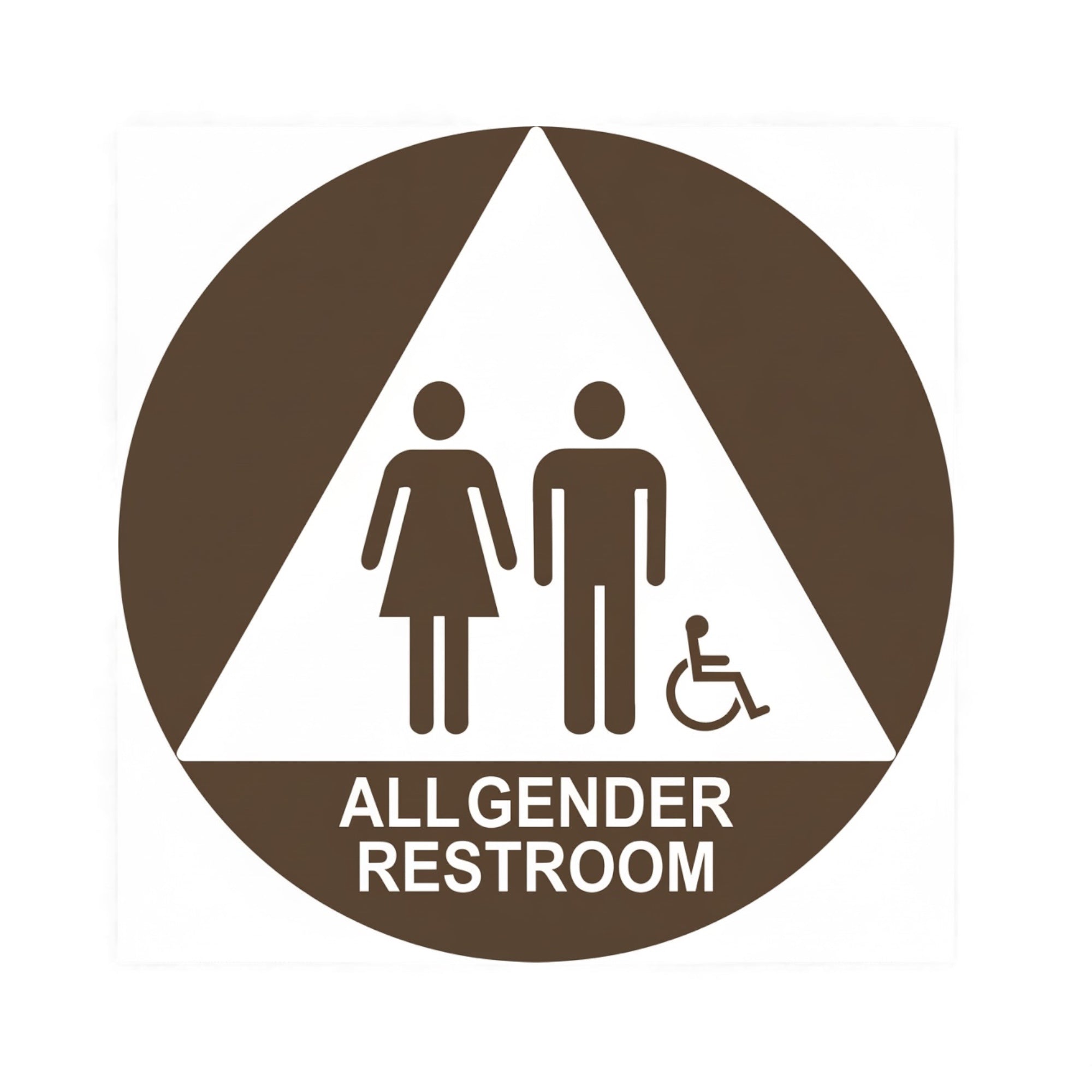 ADA Compliant All Gender Restroom 12” Round/Triangle Door Sign Accessible Pictogram ,SignOptima™️