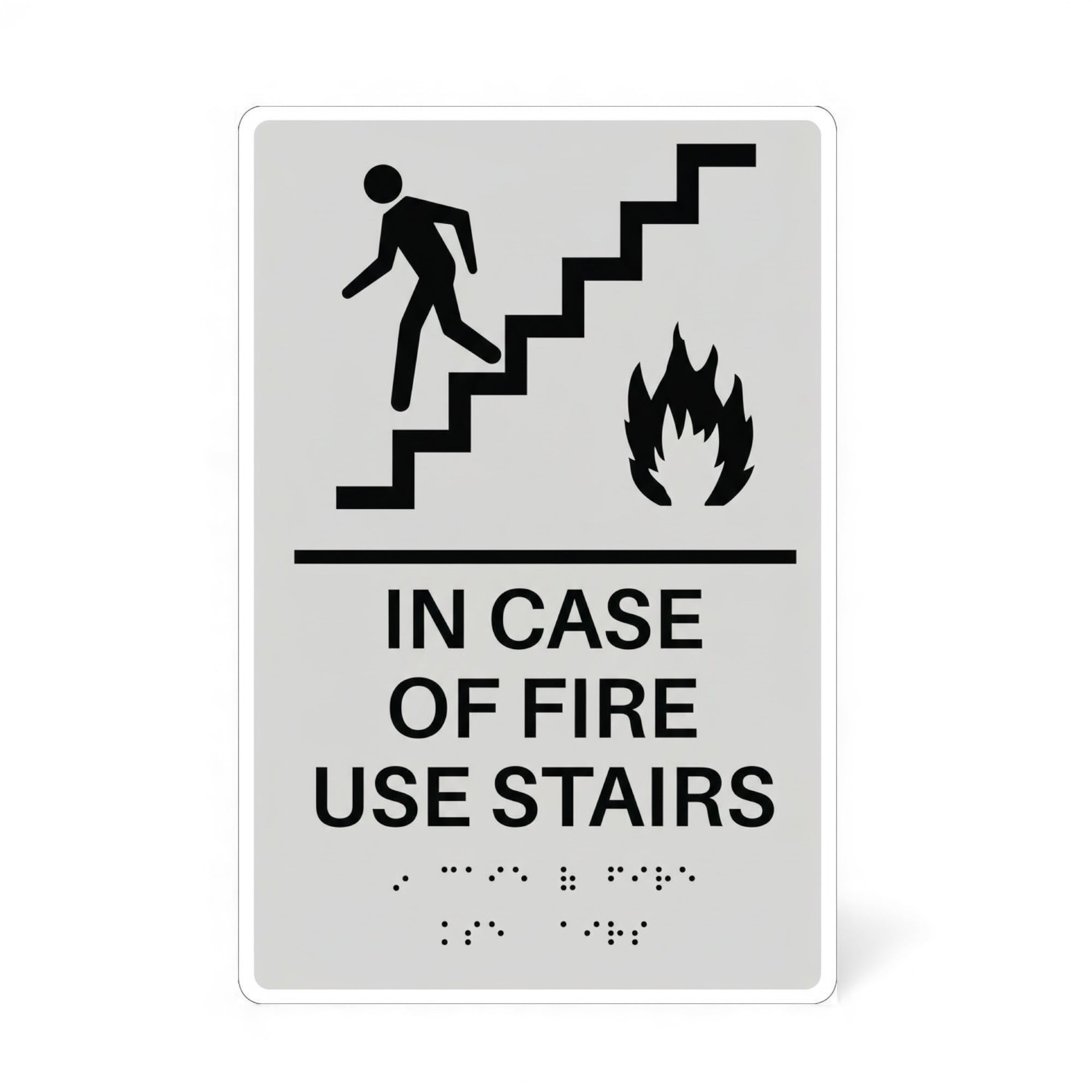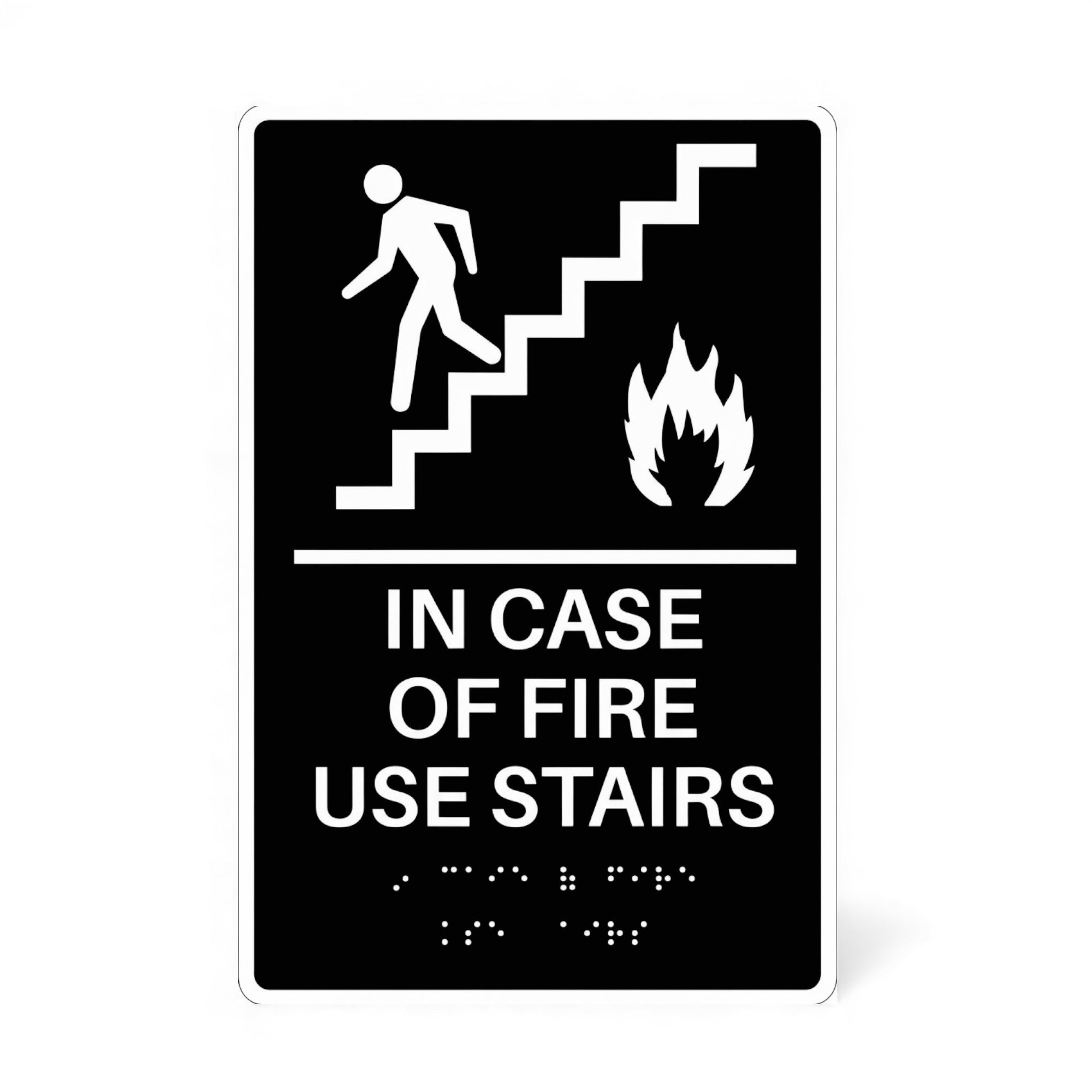 - ADA Compliant "IN CASE OF FIRE USE STAIRS" Tactile Braille II